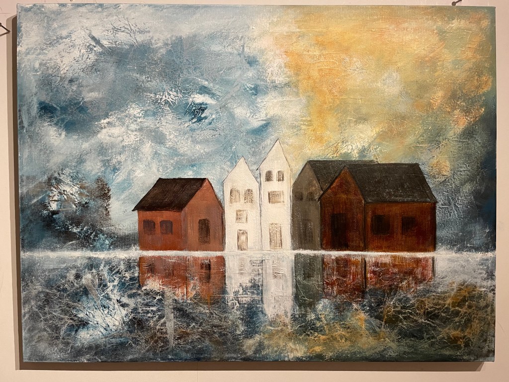 Sjøboder i ro, akryl på lerret 60×80. Pris 2000,-